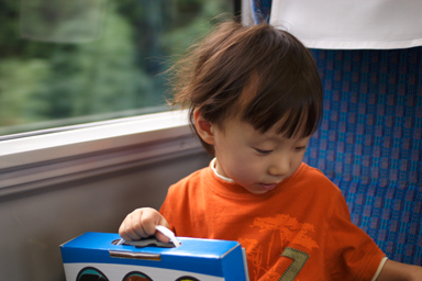 機内でも逸織は少々ハイパー状態。その間、親は眠れず。映画も来るときと全く同じ