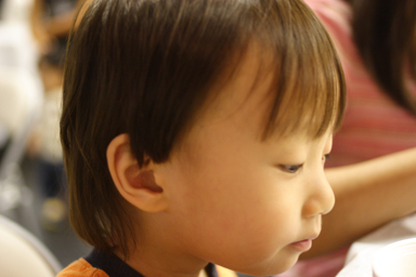 新千歳空港で。チーズというと、なぜかいつもイーッという顔をする。あまのじゃくな3歳児。