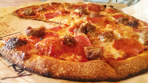 ランチは3階のピザ屋。薄い生地が美味。大人2人、子供1人でピザ2枚がちょうど 良い。